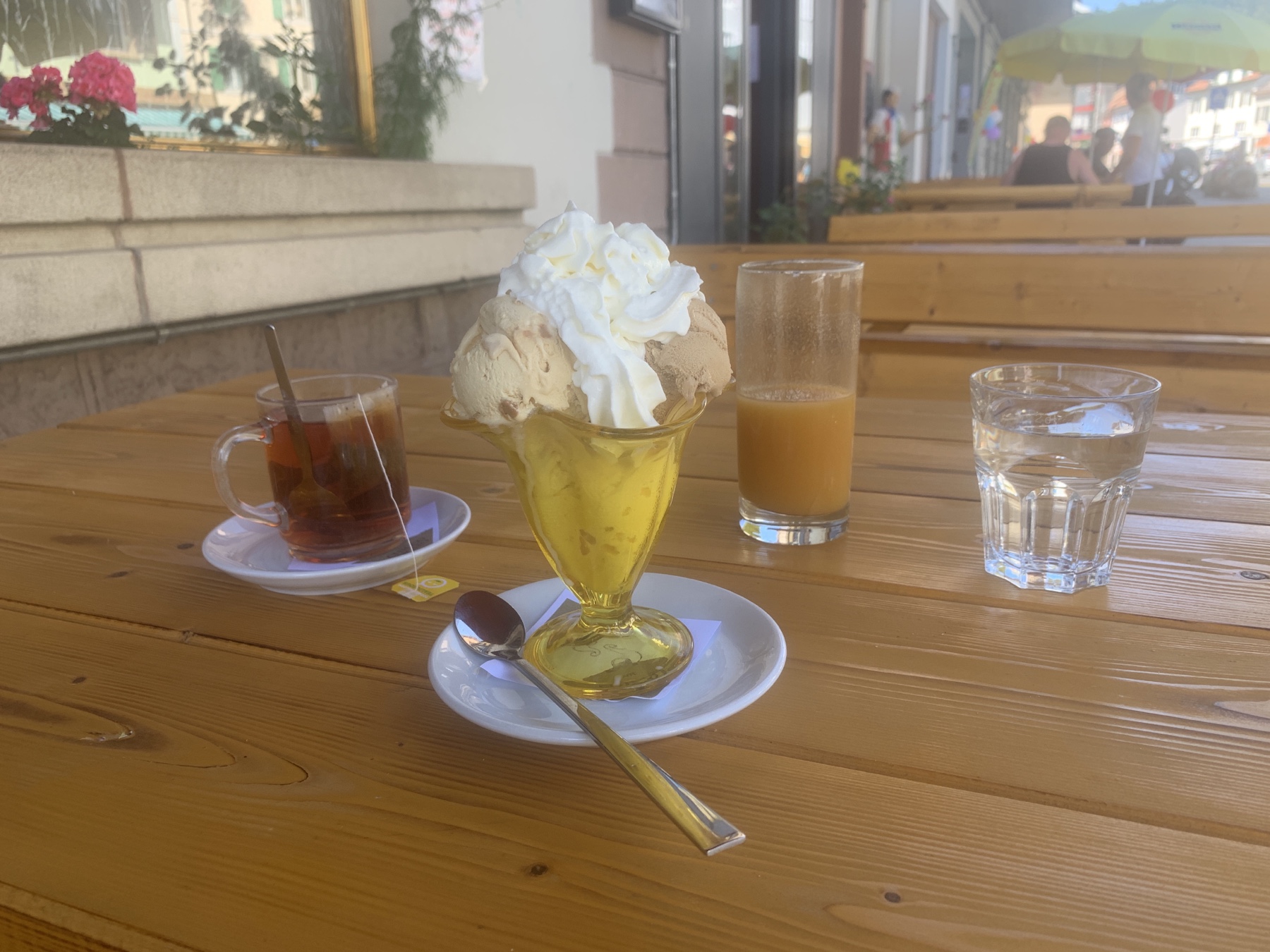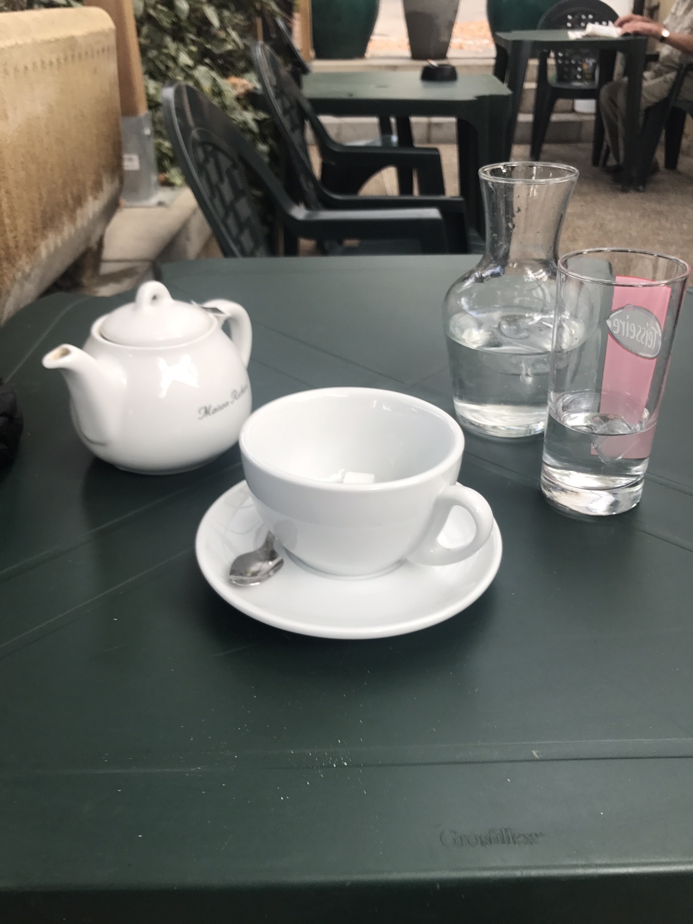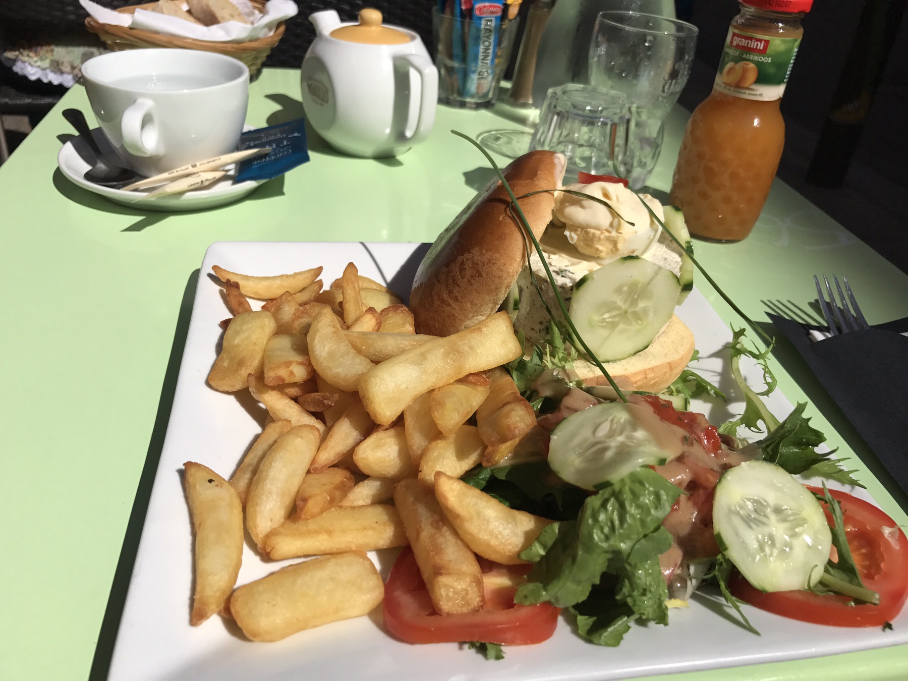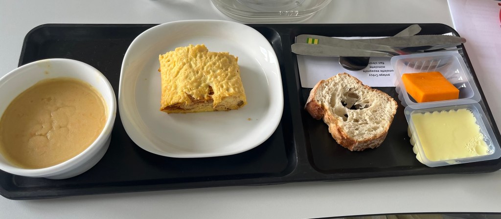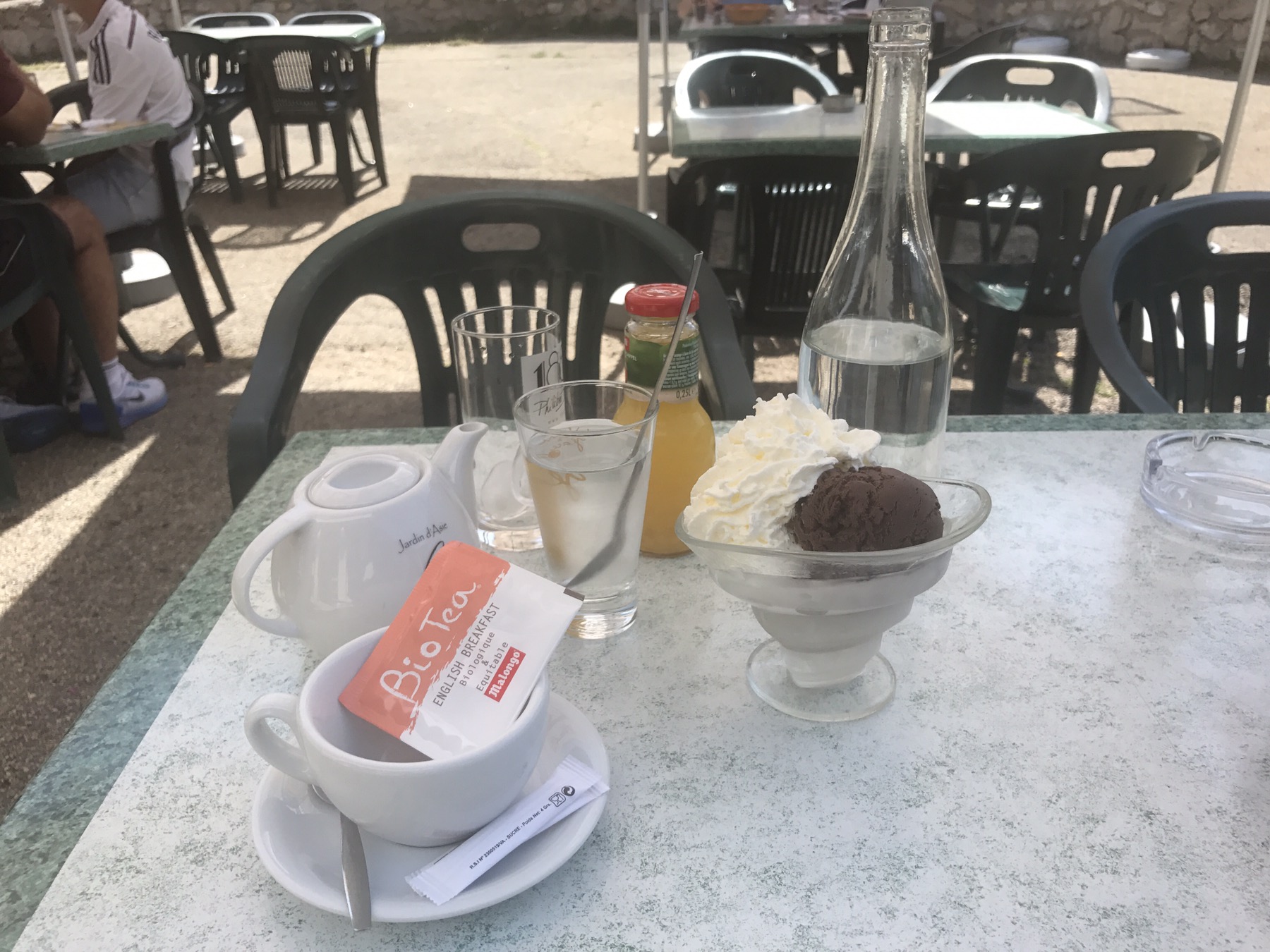 Dernier déjeuner : comme d’habitude mais cette fois avec un bon thé.