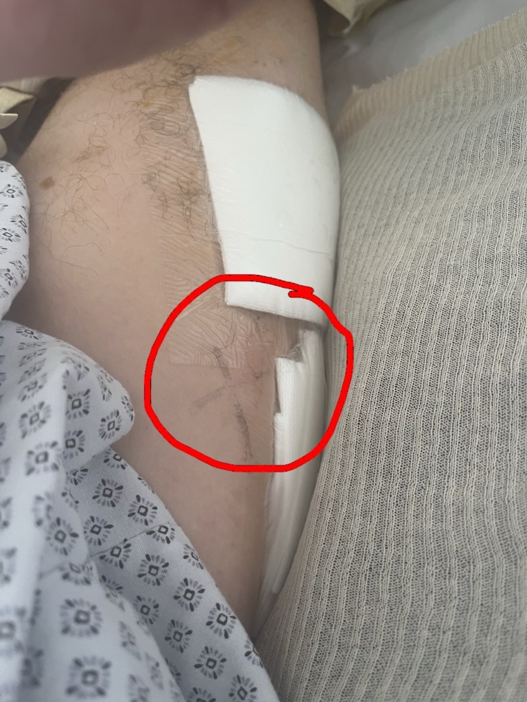 Juste avant que je m’endorme, j’ai droit à un antibiotique par le cathéter. L’infirmière viendra l’enlever plus tard, mais je dormais à moitié.