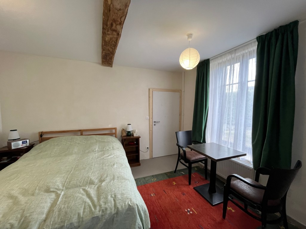 Dès le début, en planifiant les travaux à faire dans la maison, une des pièces qui a une porte donnant directement sur l’extérieur, on avait prévu d’en faire une chambre avec salle de bain pour accueillir nos mères respectives, on a commencé à appeler cette pièce la chambre des Mamies.