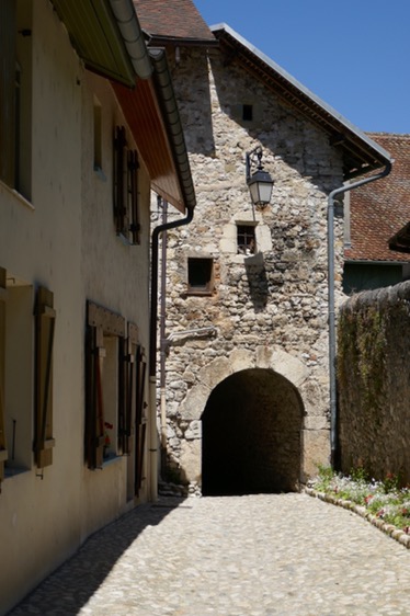 J’arrive assez vite à Yenne, je peux disposer de la chambre de suite et hop, pendant que Héra dort, Douche, avec un D majuscule, crème, laver un pull, trier les affaires que j’abandonne et faire sécher la tente; maintenant nous partons à la découverte de la ville, paraît qu’il y a un glacier avec que des glaces maisons, miam! Mince, le glacier est fermé le lundi, heureusement que je dors sur place.