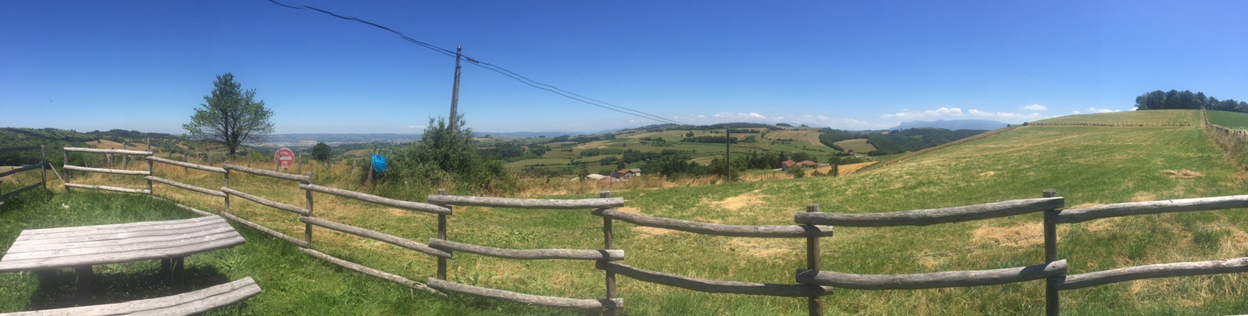 Nous repartons bien reposé. Nous arrivons sur un sommet un peu dégagé, il y a une superbe vue et une table panoramique.