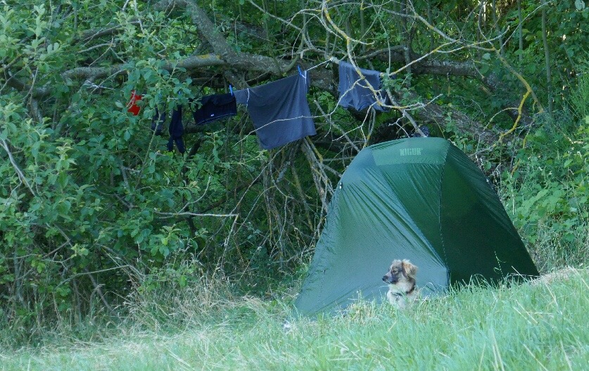 Après 25 km , je trouve une belle clairière et je monte la tente. Ça sera une nuit sous tente en pleine nature, je me réjouis déjà du réveil.