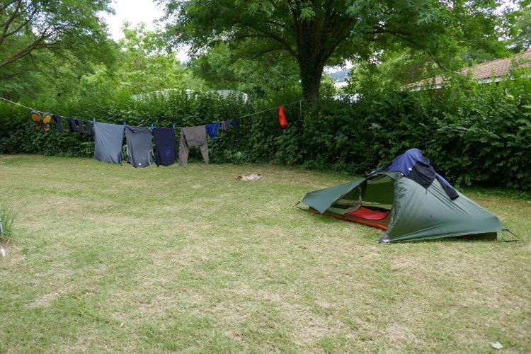 Il y a la tente verte, du linges qui essaye de sécher et bien sûr Héra qui dort.