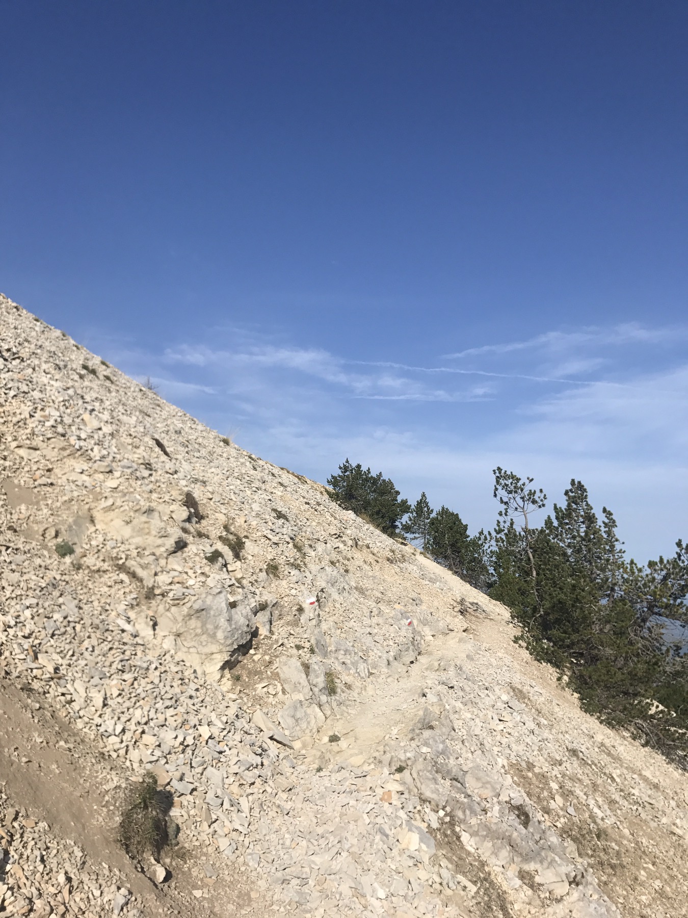 plus haut quelques rachitiques pins, de rares touffes de graminée + des pierres