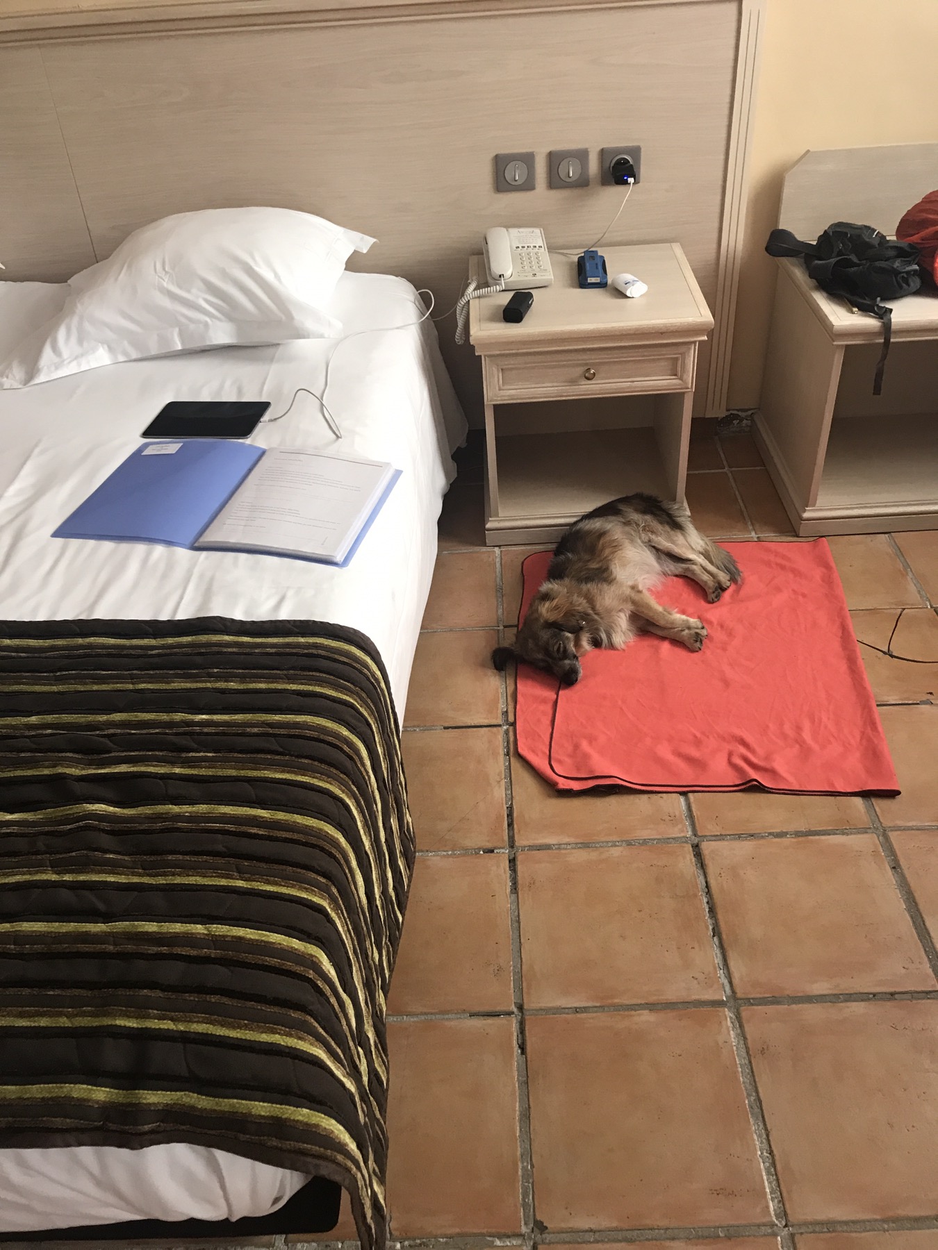 Tu prévois de passer par Marseille ? On a un copine, qui a aussi un chien, qui habite là-bas, elle a certainement une chambre d’amis à dispo. Tiens-nous au courant.